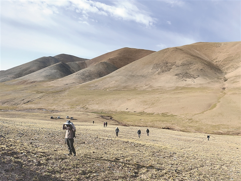 图为“李四光青藏高原地层古生物科考突击队”在野外开展科考。 中国科学院南京地质古生物研究所供图