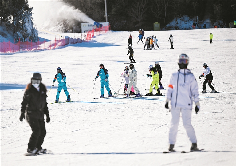 位于燕山山脉东部的天津市蓟州区积极挖掘特色冰雪文旅资源,完善冰雪产业基础设施建设,释放冰雪经济动能,推动冰雪“冷资源”转变为旅游“热经济”。图为近日,游客在该市一滑雪场滑雪。 新华社记者 赵子硕 摄