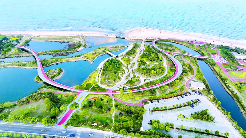 绿道添魅力,生活添美好。近年来,日照市还海于民、还景于民,在保留松林、沙滩、礁石和湿地资源的基础上,通过修复整治生态岸线,打造出阳光海岸绿道。绿道建设按照“依托原貌、临场设计”的理念,不动一棵黑松,不动一块礁石,不动一片沙滩。建设绿道同时,将“原生态”基调贯穿始终,同步对沿线荒废的养虾池、荒地等生态薄弱的地方进行了重点修复提升,共修复海岸带5000多米,最大限度恢复保护了海洋生态系统的完整性和自然性。