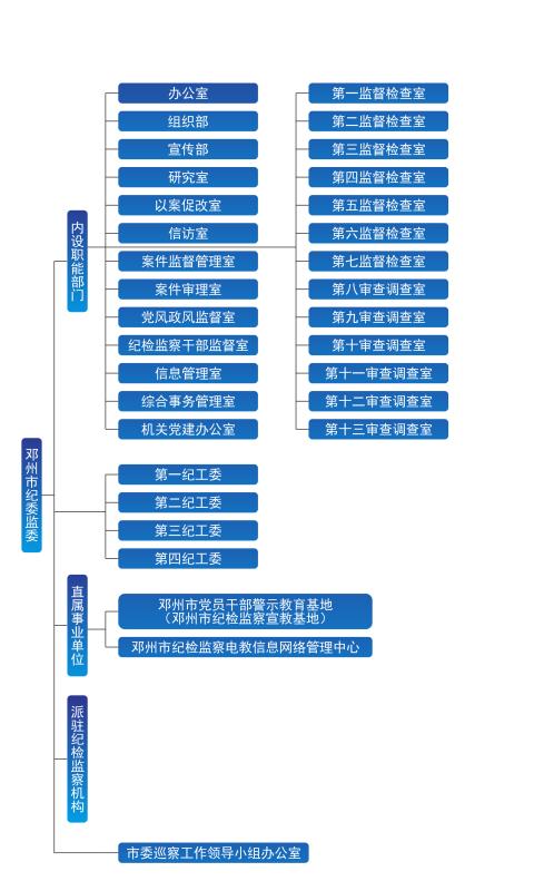 邓州市纪委机关与邓州市监委合署办公,市纪委监委机关设下列内设机构: