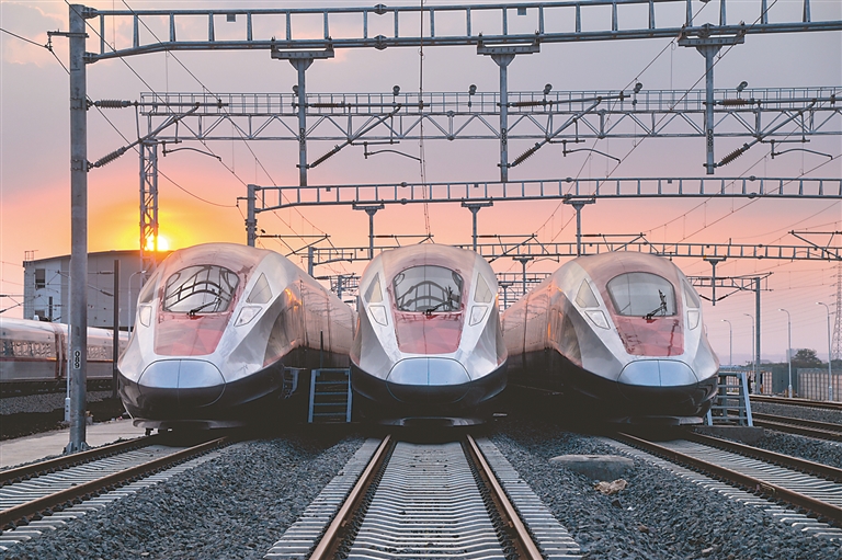 复兴号高速列车是中国自主研发、具有完全知识产权的新一代高速列车,是中国科技创新的重大成果,也是中国走向世界的亮丽名片。在科技自立自强的创新道路上,中国努力打造世界轨道交通装备新标杆,不断创造中国标准新高度。