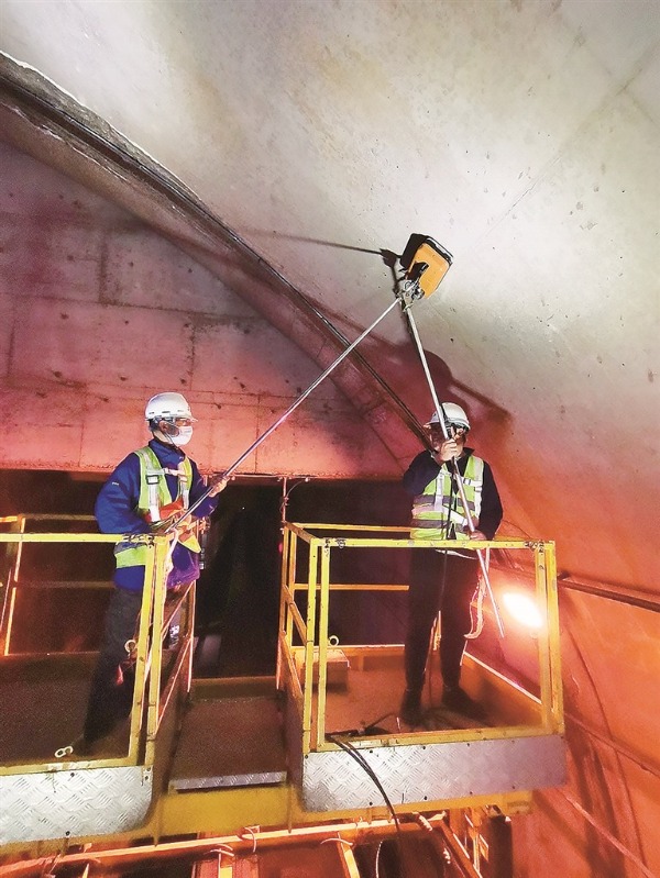 图为重庆市工程质量检测机构工作人员运用智能采集、市检测行业大数据平台开展现场采集。 重庆市纪委监委 供图