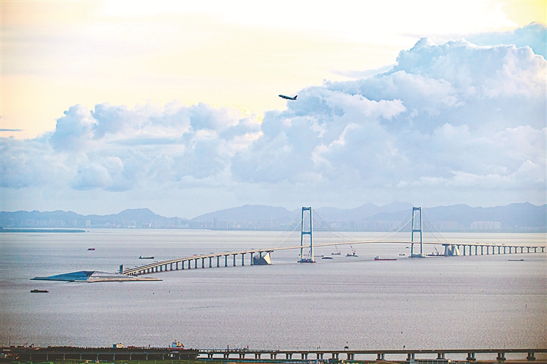 在浩瀚的伶仃洋上,深中通道宛如游龙,于海天一色间蜿蜒出优美弧线。“行驶在深中通道上面,大家能感受到大国工程的建筑之美、大湾区的繁荣之美和伶仃洋的自然之美。”深中通道项目建设指挥长陈伟乐说。