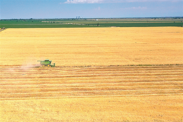 为保障夏粮收购,新疆准备夏粮收购仓容456万吨,预计收购小麦330万吨。同时提前备足粮食收购资金,做到“仓等粮”“钱等粮”。截至目前,全疆收获小麦超1000万亩,收获进度过半,已收获小麦单产和品质好于上年。图为近日,农机手驾驶联合收割机在新疆呼图壁县二十里店镇宁州户村收割小麦。新华社记者 丁磊 摄