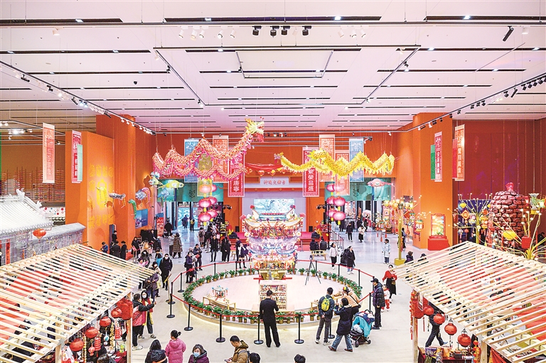 “过年——春节主题展”近日在中国工艺美术馆·中国非物质文化遗产馆举办。展览通过艺术化呈现与春节相关的非物质文化遗产代表性项目,展现中华民族这一最盛大的传统节日。 图片来源:视觉中国