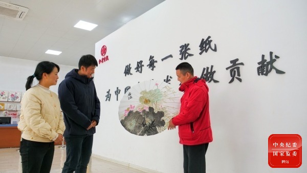 安徽省宣城市泾县的手艺匠人创新实践,将宣纸传统制作技艺与安徽省非物质文化遗产泾县油布伞制作技艺跨界融合,将书画载体“搬到”伞面上,画一朵青莲,绘一株翠竹,于方寸之间弘扬清风正气,让廉洁文化入脑入耳入心。(安徽省宣城市泾县纪委监委供 章醒 摄)