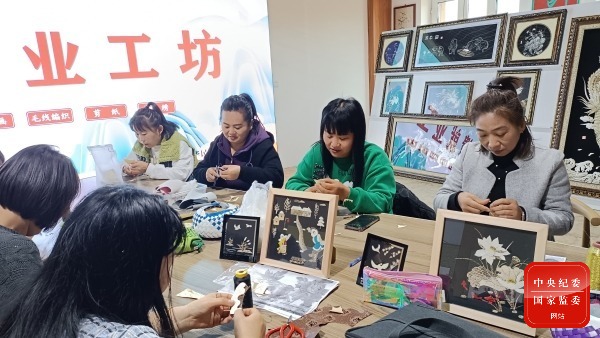 在赫哲族非遗就业工坊,鱼皮制作技艺传承人正在带领学员们一起制作“廉洁”主题鱼皮画作品,她们用“匠心”将承载着历史记忆的非物质文化遗产与廉洁文化相结合,加以传承与弘扬。(黑龙江省佳木斯市同江市纪委监委供 王德志 摄)