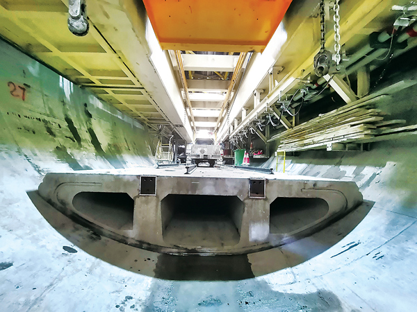 掘进机使用全球首创的压注工法掘进成型的山体隧道。