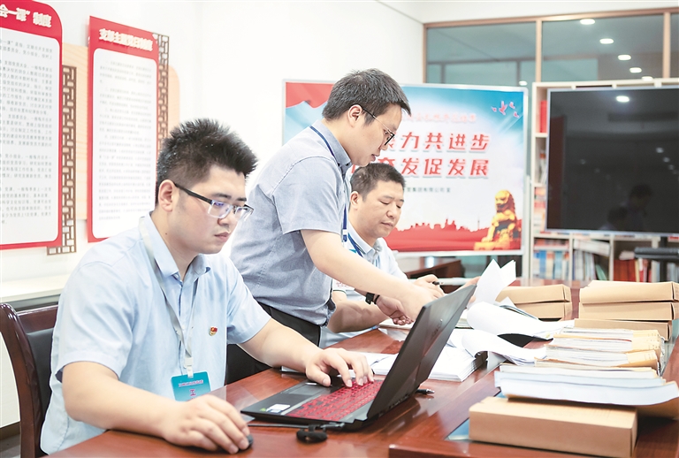 重庆市万州区纪委监委针对违规自定薪酬、超标准超范围发放津补贴、借节日之机变相发放福利等问题,成立专项检查组,采取个别谈话,调阅财务票据等相关资料的方式,加强监督检查,进一步严明纪律。图为该区纪检监察干部在区属某重点国有企业开展监督。梁光毕 摄