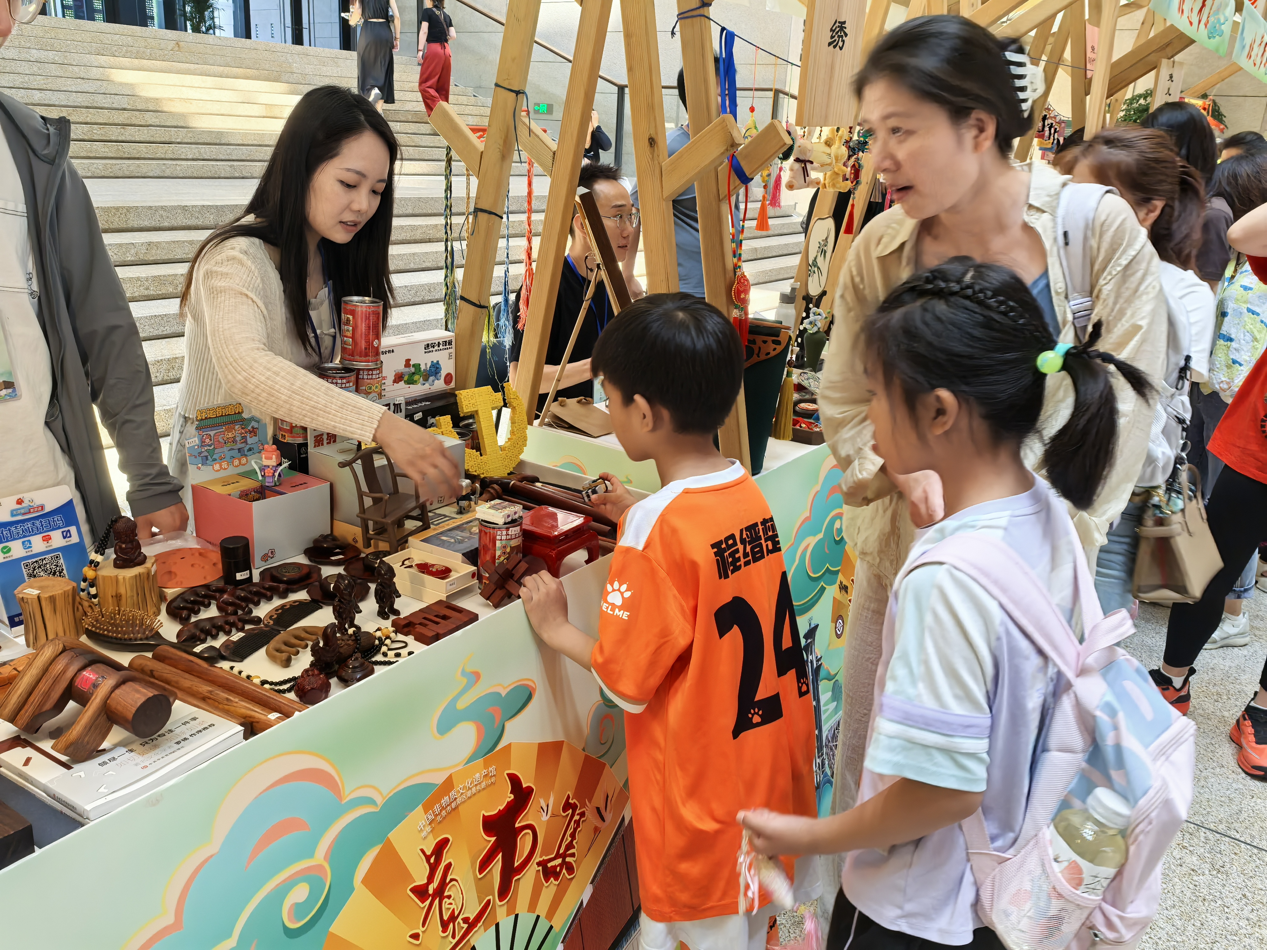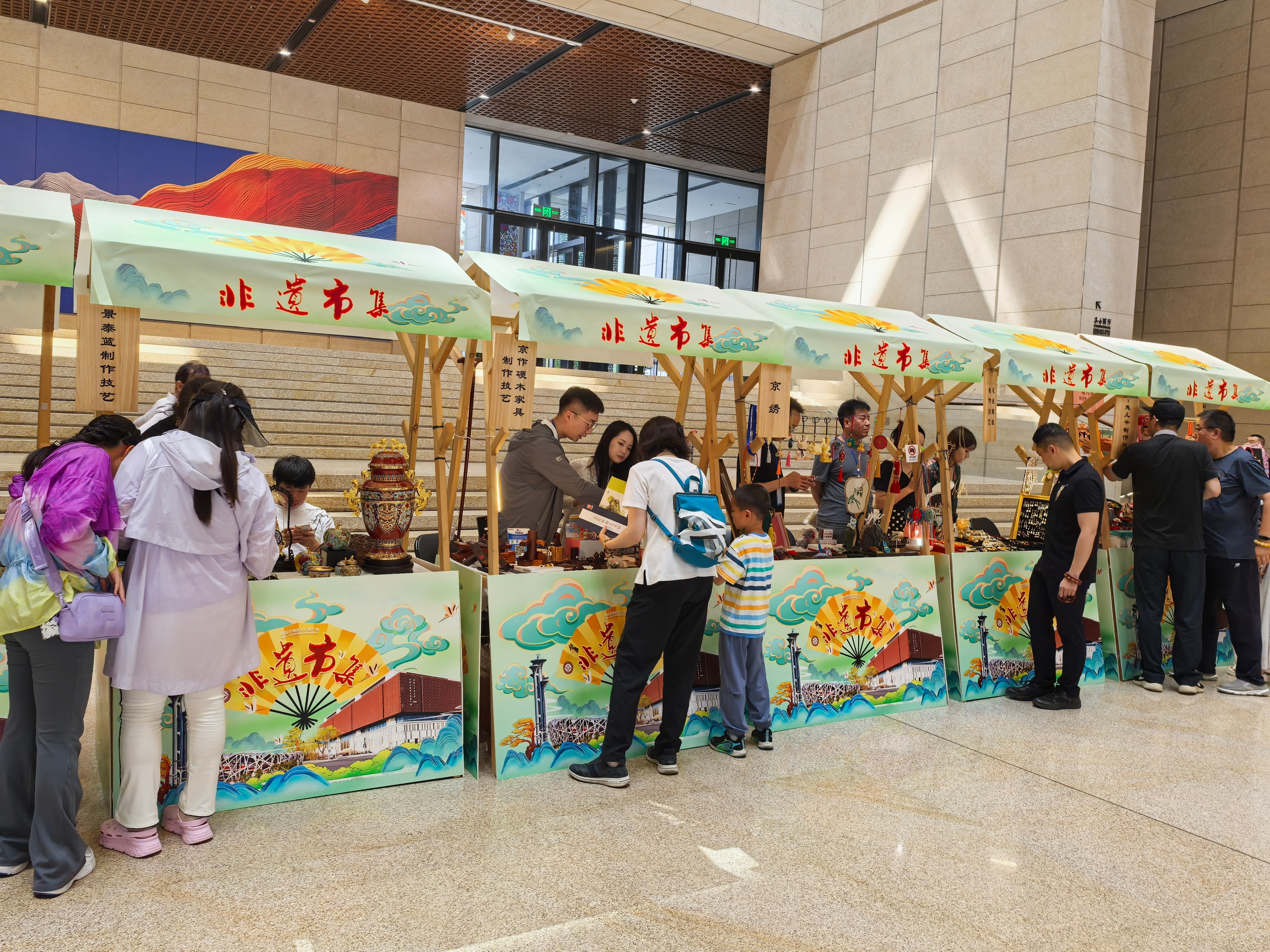 记者注意到,除非遗市集外,展馆内还设有非遗手工艺的现场体验点,比如流沙笺团扇制作、壁画临摹、点蓝工艺等。“我们希望打造一个集展示、体验、交流、分享于一体的平台,让更多老百姓可以‘把非遗带回家’。通过以文塑旅、以旅彰文,推动文化消费,让非遗融入现代生活。”中国工艺美术馆•中国非物质文化遗产馆社会服务部主任李妍说。