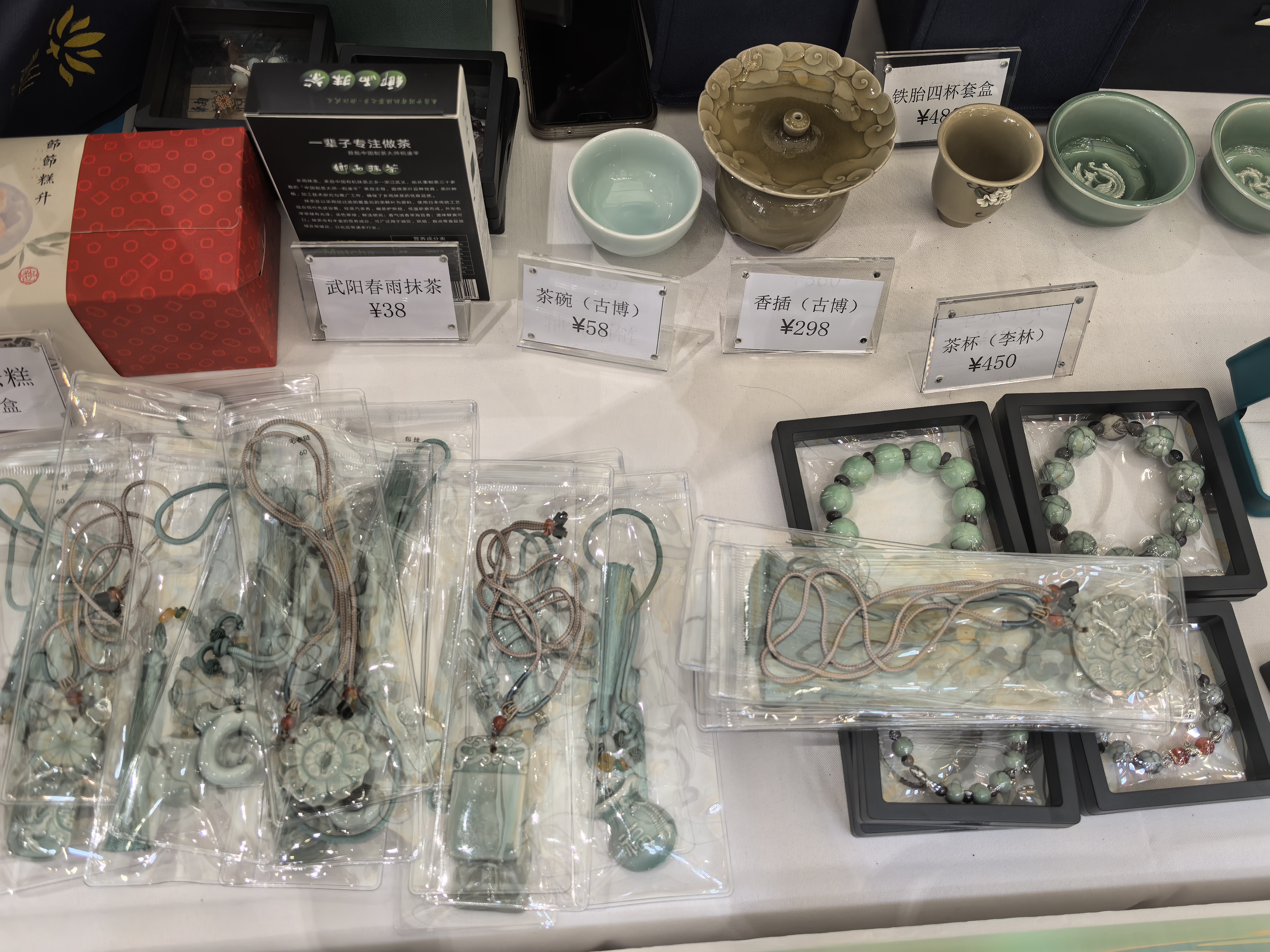 图为本次非遗市集上和龙泉青瓷相关的产品。侯颗 摄
