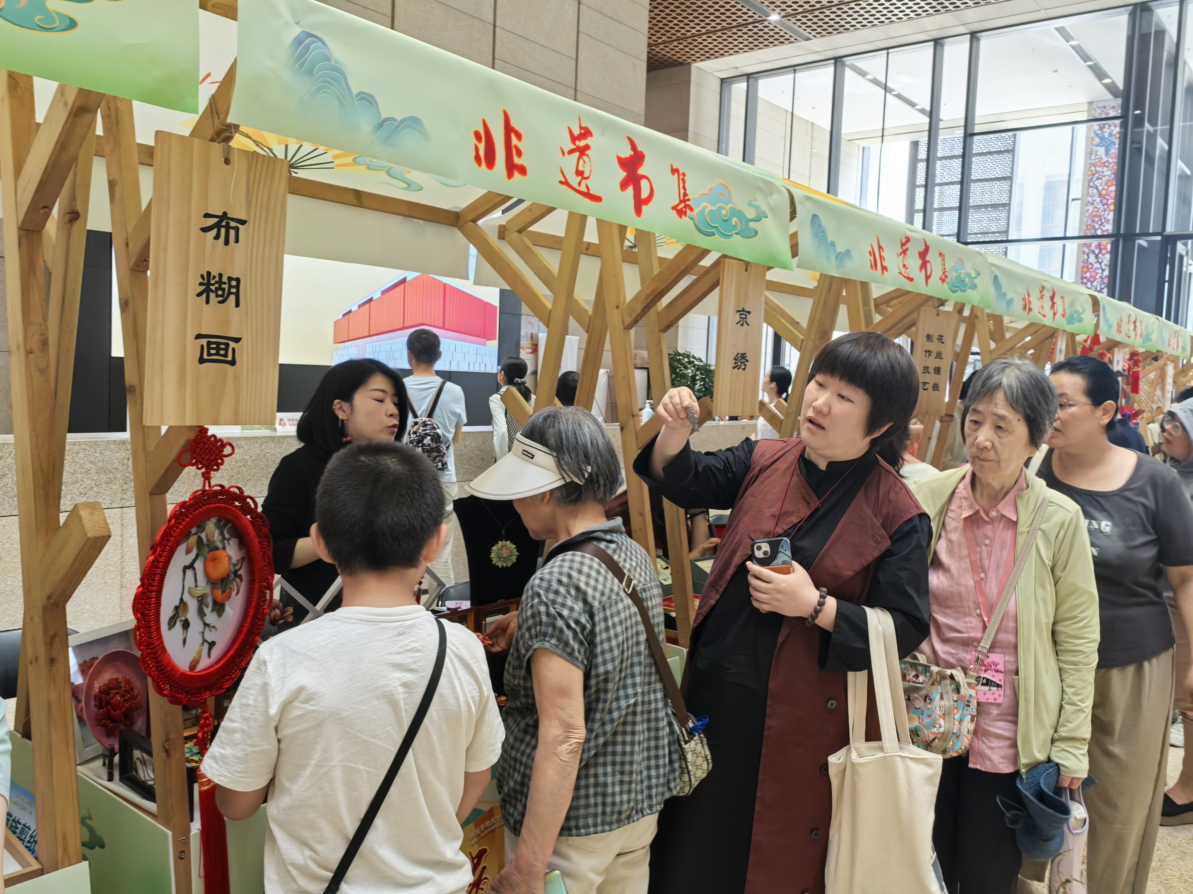 6月8日是今年的“文化和自然遗产日”,也是端午假期的第一天。上午九点多,中国非物质文化遗产馆一层大厅里热闹非凡,一场集纳了京津冀等地区近30项非遗项目的非遗市集吸引了不少参观者。