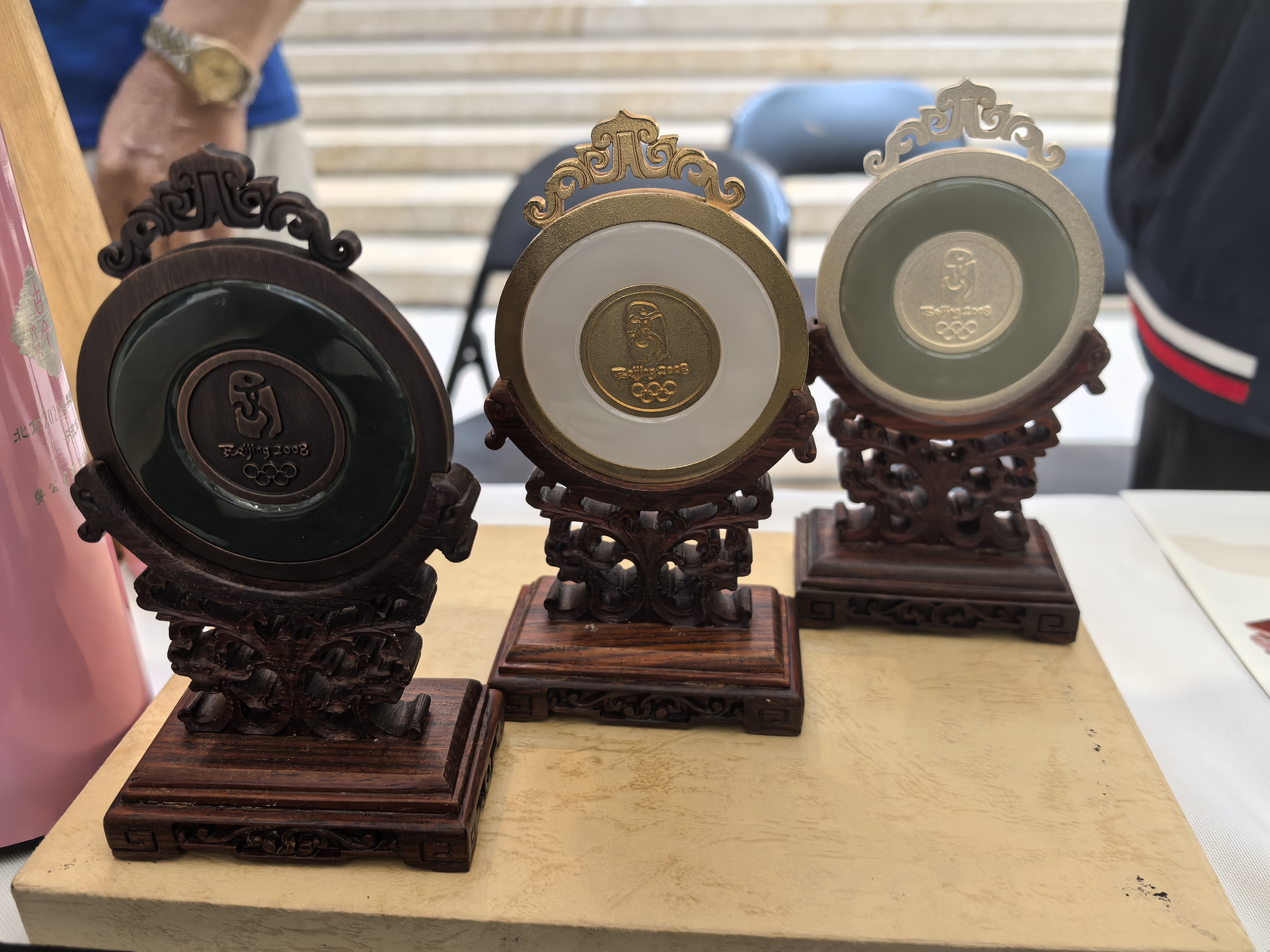 图为市集上展出的北京奥运会奖牌。侯颗 摄