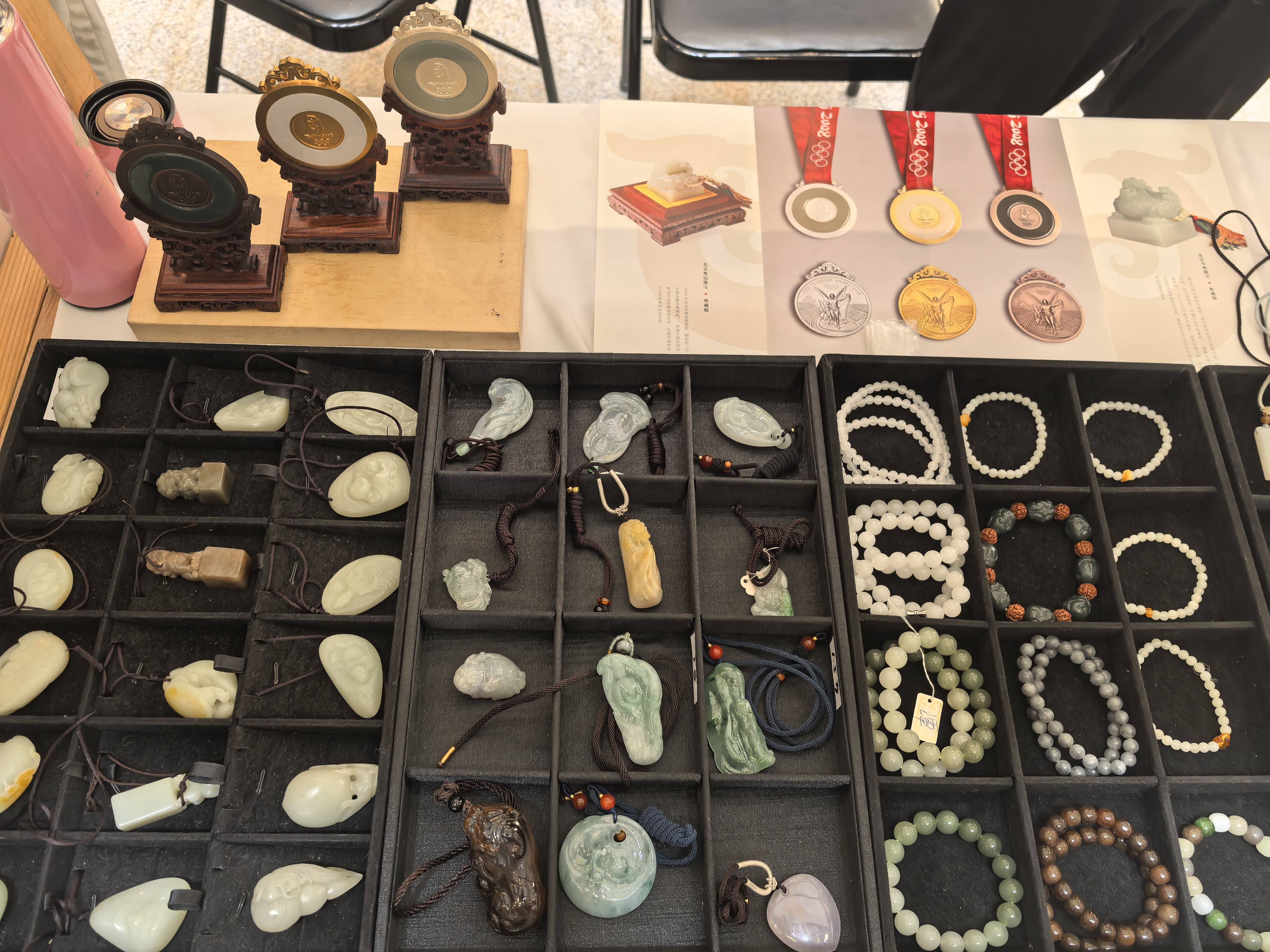 图为本次市集上,张铁成制作的各类玉雕产品。侯颗 摄