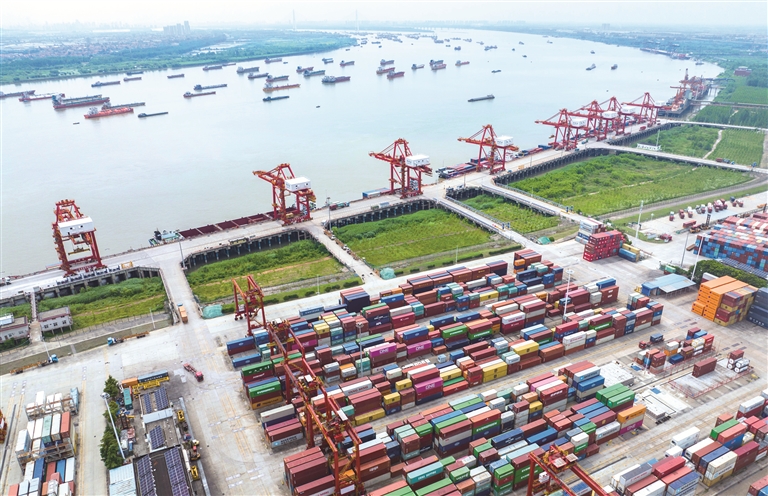“十五五”规划纲要提出以推动高质量发展为主题,树立政绩观必须立足新发展阶段,贯彻新发展理念,把提升发展质量和效益作为创造政绩的根本路径。图为武汉阳逻港。新华社记者 杜子璇 摄