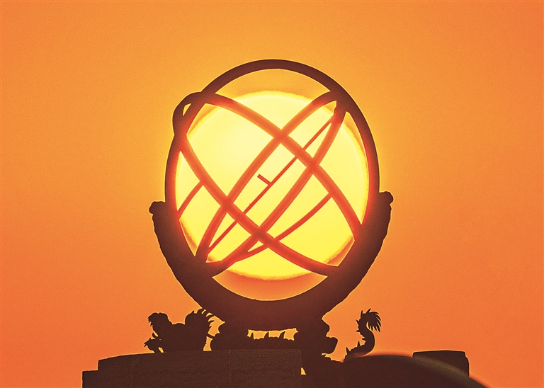 北京古观象台,太阳穿过黄道经纬仪。