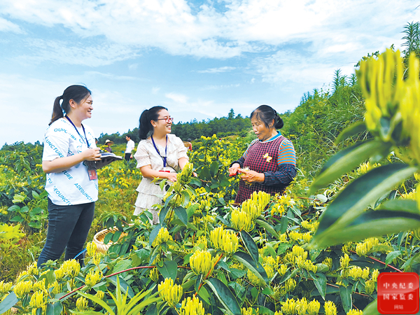 为精准规范用好问责利器,贵州省遵义市绥阳县纪检监察干部深入群众,面对面对相关问题进行核查,推动问责工作“事实清楚、证据确凿、依据充分、责任分明、程序合规、处理恰当”。图为该县纪检监察干部在小关乡金银花基地核实群众反映的多报金银花苗和肥料补助款相关问题线索,查清相关人员责任。 吴雅晴 摄