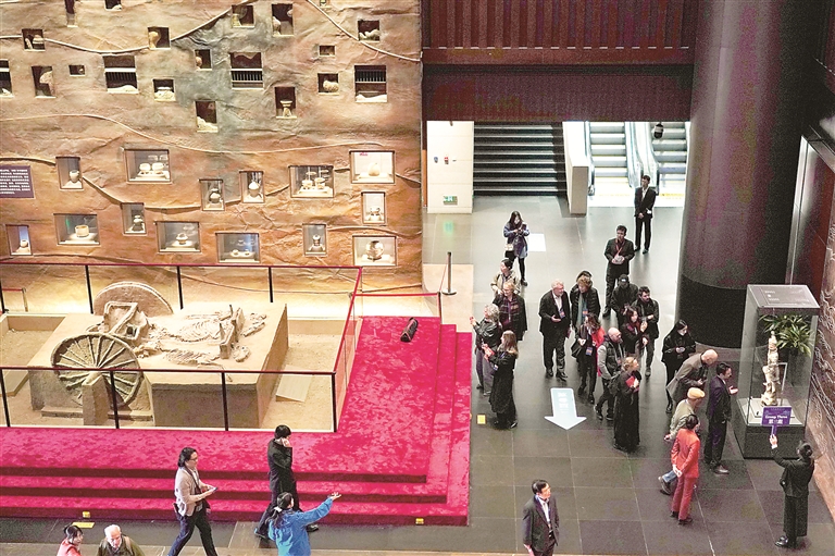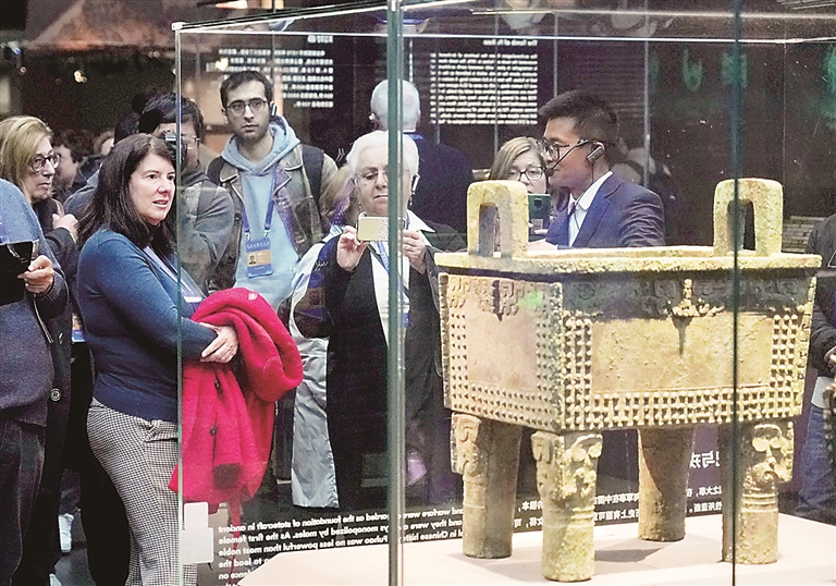 首届世界古典学大会于2024年11月在北京举行,大会期间300余位中外嘉宾来到中国考古博物馆参观“考古与中华文明溯源展”,该展是本届世界古典学大会推出的配套活动之一。图为嘉宾在中国考古博物馆内参观展览。新华社记者 张晨霖 摄