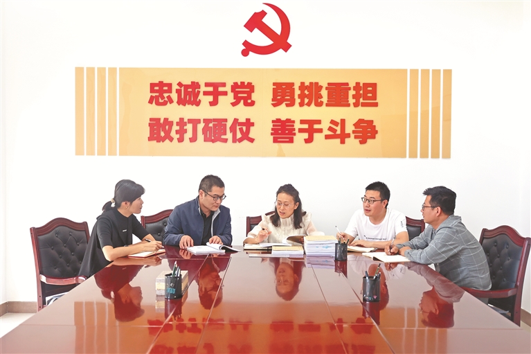 图为石嘴山市纪委监委案件审理室工作人员围绕冯建国案有关问题进行研讨。杨向峰 摄