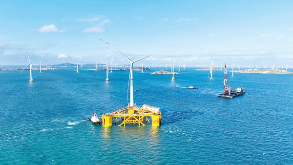 “我们还开发设计了适用漂浮式风机的控制算法和平台稳定控制系统,并且完成10余项关键设计升级。”陈勇介绍,针对漂浮式风机系统稳定问题,项目团队攻克了风电基础设计、风电机组适应性改造、动态海缆及锚泊系统设计等方面的“卡脖子”技术,填补了相关领域技术空白,实现了从“0”到“1”的突破。