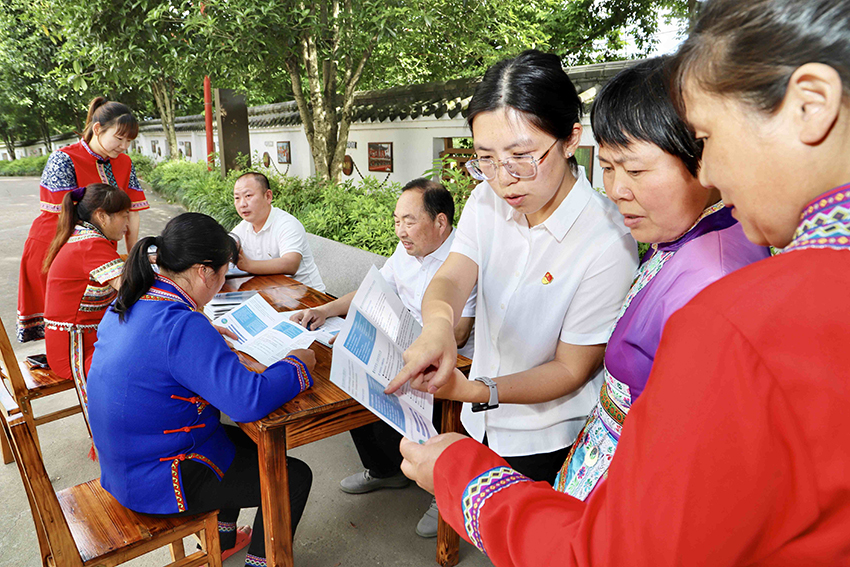 浙江省金华市婺城区纪委监委坚持激浊扬清的鲜明导向,严肃查处诬告陷害行为,激励党员干部敢于担当、积极作为。图为该区纪检监察干部在琅琊镇向村民介绍检举控告程序。 楼婷 摄