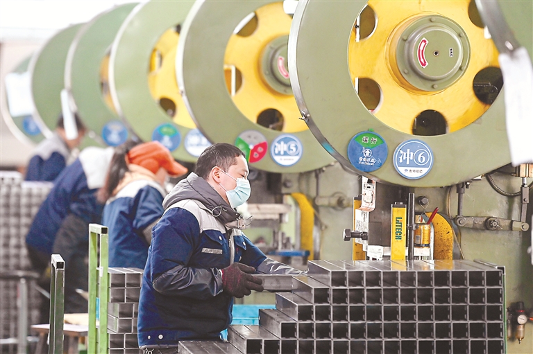 近年来,浙江省嵊州市大力发展以“产业大脑+未来工厂”为核心的数字经济,推动工业经济高质量发展。图为工人在该市某公司冲压车间作业。新华社记者 黄宗治 摄