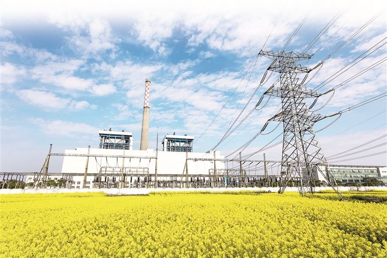 安徽省池州市,掩映在油菜花海中的发电厂。 图片来源:视觉中国