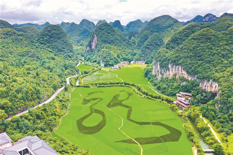 图为贵州安顺,世界最大植物汉字景观“龙字田”。“龙字田”的字体拓自唐代书法家怀素的草书,每年吸引众多游客拍照“打卡”。 图片来源:视觉中国