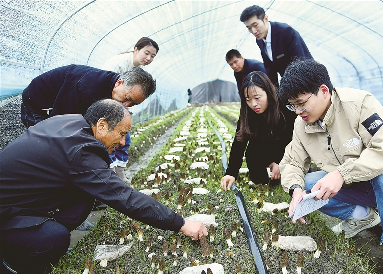 3月21日,江西省德兴市农投集团机关干部来到大茅山镇羊肚菌大棚种植基地开展调研。 图片来源:视觉中国