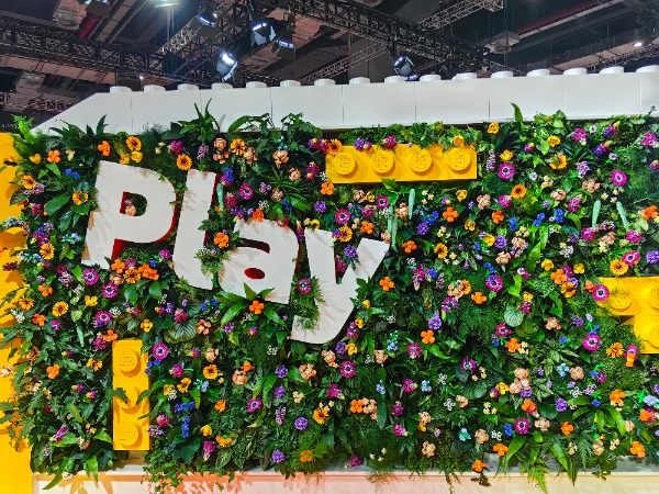 图为部分使用生物聚乙烯乐高元件布置的“积木花墙”。文子玉 摄