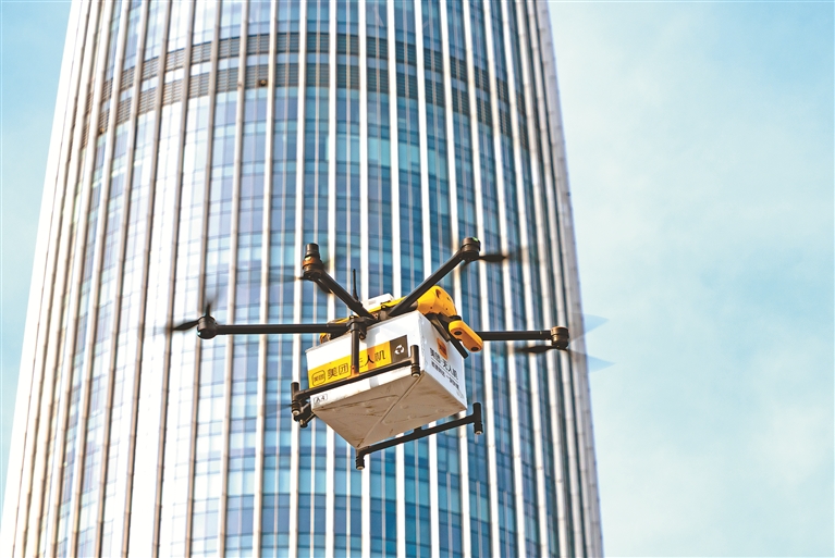 不久前,家住深圳市的闫女士带着孩子在当地的世界之窗景区游玩,除了欣赏美景,还体验到了无人机外卖配送的便利。据闫女士介绍,景区里吃饭的地方很少,孩子逛着逛着就饿了。正巧,她在一个景点旁看到了美团外卖无人机配送的接收点,黄色的柜子上有商家二维码,便试着扫码下单了一杯奶茶。没想到,仅用了五六分钟,就有无人机将奶茶送过来了。“如果是外卖员送,由于外卖员进不去景区,我们就需要走到景区门口去取外卖,一来一回十分折腾。而无人机配送却可以直接送达,方便很多。”闫女士说,推广期间,无人机配送的费用并不贵,当时,景区里有不少游客都在使用。