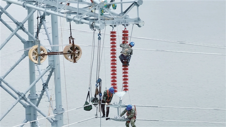 两个高塔间如何拉上电缆?“首先需要用无人机,将筷子粗细的导引绳在两塔间连接起来,之后不断通过‘小绳牵大绳’的方式,逐步与更粗的导引绳连接,直至最终将电缆连上,整个过程需耗时半个多月。”谢晓辉介绍,牵引中还要时刻保持引绳高度,注意防范大风将缆绳缠绕。