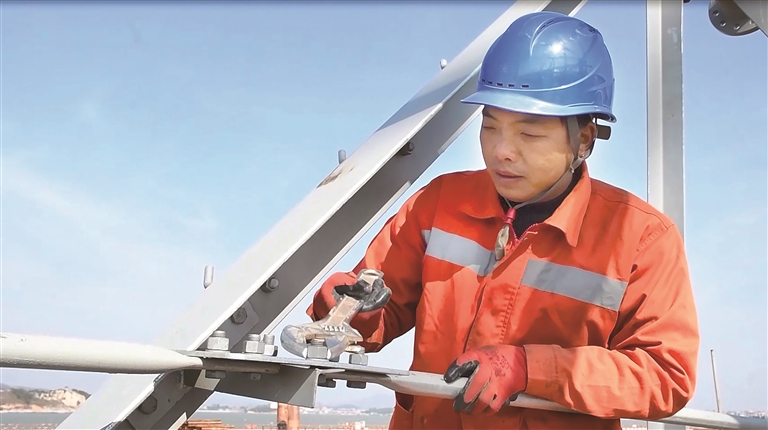 承受大风大浪双重冲击、头顶烈日或面迎寒风……到了安装铁塔的关键环节,施工人员面临的挑战接踵而至。