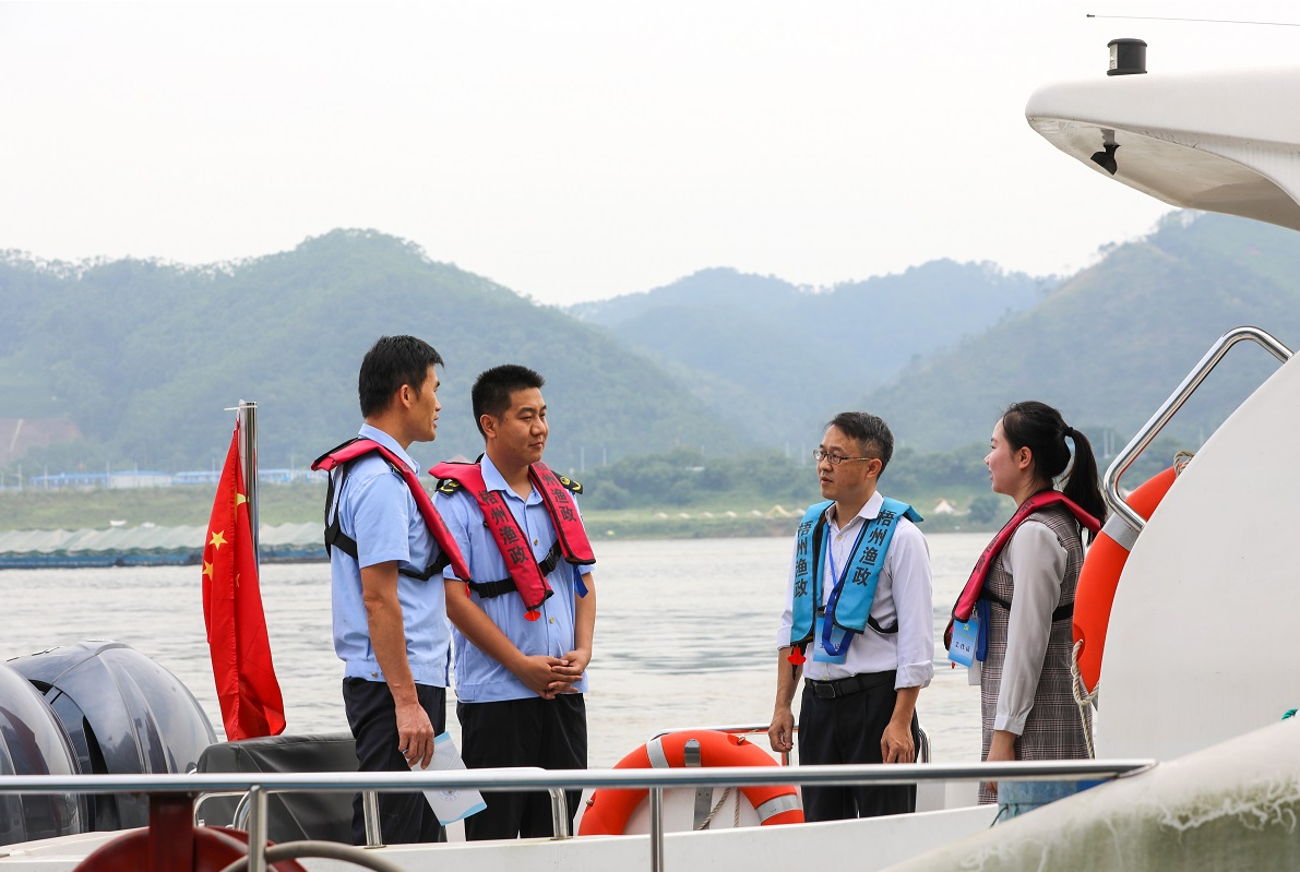 广西壮族自治区梧州市纪委监委加强对问题线索处置情况核查力度,做细做实问责工作,充分发挥问责的震慑效应和保障作用。图为该市纪委监委干部在西江生态环境综合整治现场了解问题整改销号情况。林志清 摄
