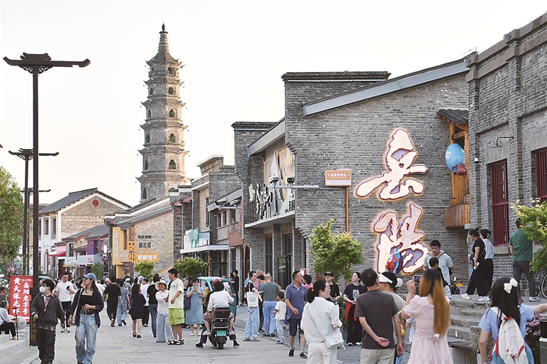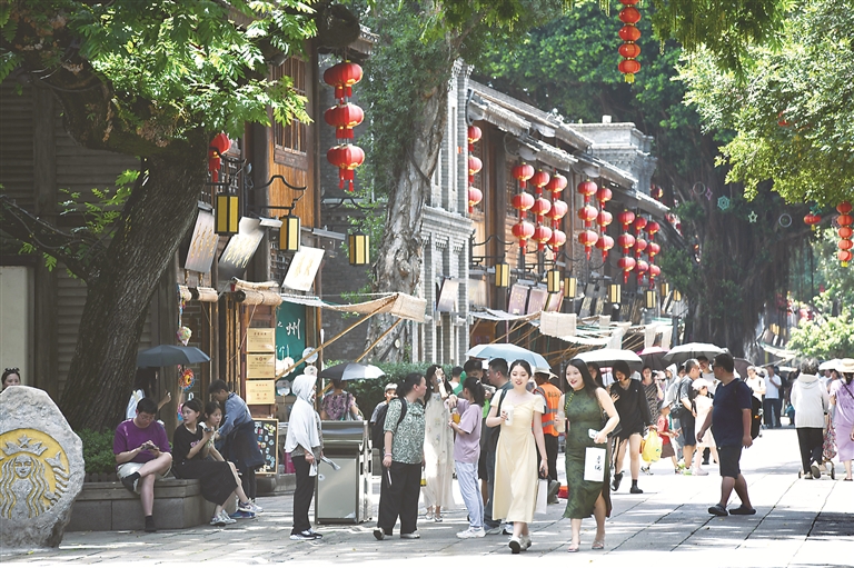 湖南省岳阳市将文化基因转化为发展动能,让千年文脉与时代脉搏同频共振。图为游客在该市洞庭南路历史文化街区休闲游玩。新华社发