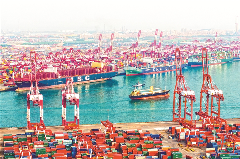 新时代以来,我国自由贸易试验区建设坚持在法治下推进改革,在改革中完善法治,进行了一系列制度创新。图为山东自贸试验区内的前湾港,码头前沿一派繁忙。图片来源:视觉中国