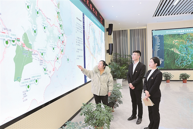 湖北省丹江口市纪委监委紧盯南水北调工程安全、水质安全、供水安全开展政治监督。图为近日,该市纪委监委监督检查组在市水质安全保障指挥中心监测大厅了解水质安全“大数据”监测以及职能部门履职情况。夏君 摄