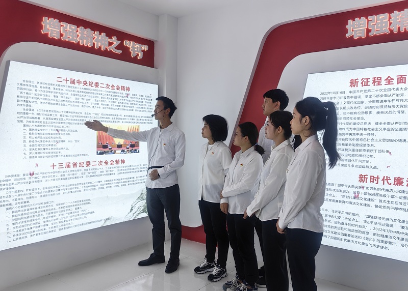 贵州省安顺市纪委监委把纪律教育融入日常管理监督,通过开展集体廉政谈话、参观廉政教育基地、观看警示教育片等形式,增强党员干部拒腐防变免疫力。图为近日,该市镇宁县党员干部在县全面从严治党警示教育基地接受纪律教育。李小应 摄