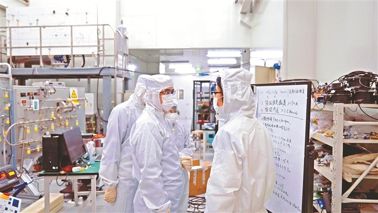 工程建设、科研实验两不误,离不开科学统筹、创新施工。项目建设者们不断优化设计施工,提前协调解决可能存在的各类交叉干扰问题。为实现超高难度施工要求,建设者们还进行了很多创新,分区域、分阶段、封闭施工,根据科研实验需要调整施工作业时间。