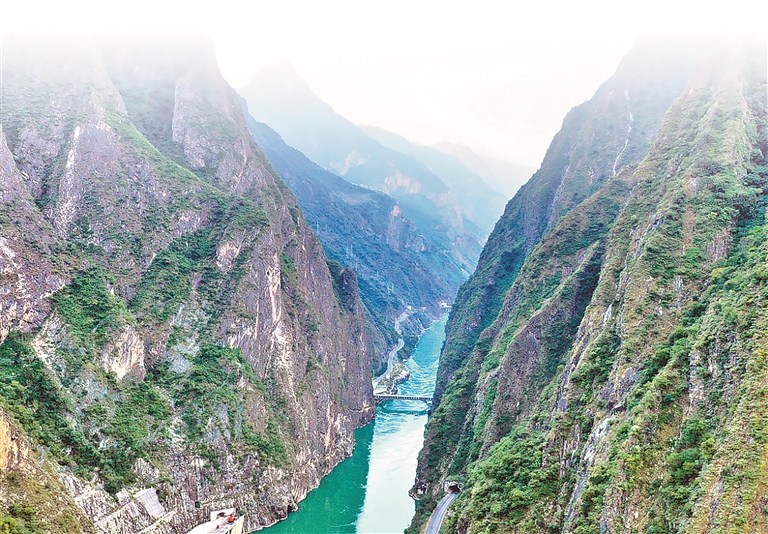 四川凉山,雅砻江河谷深切,地形陡峻。锦屏大设施就建在图右侧山体中。(雅砻江公司供图)