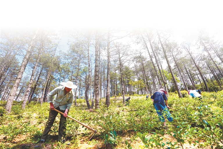 福建省泉州市永春县下洋镇上姚村是一片被绿树环绕的小山村,全村面积共26平方公里,其中有大约16平方公里是山林地。2021年,为充分利用林地空间资源,下洋镇以“长期得绿、短期得利、以短养长、长短结合”的发展思路,大力发展林下经济,让村民们端上了“绿饭碗”。