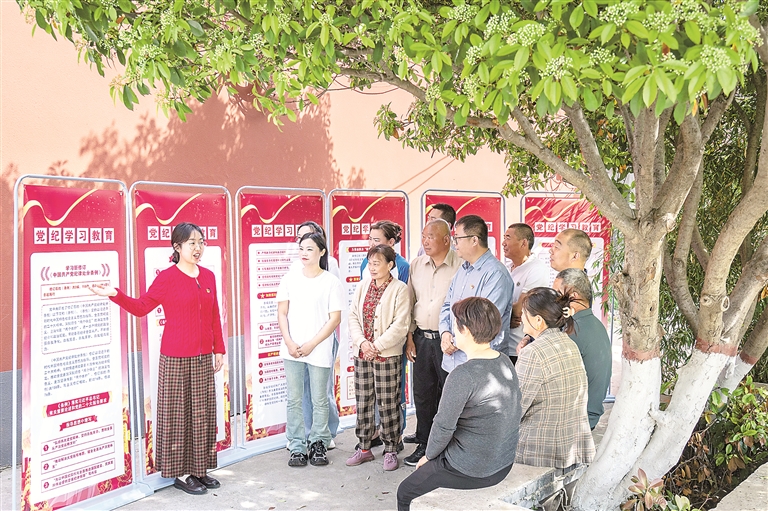 图为河南省漯河市源汇区纪检监察干部在大刘镇南王村宣讲《中国共产党纪律处分条例》。 图片来源:视觉中国