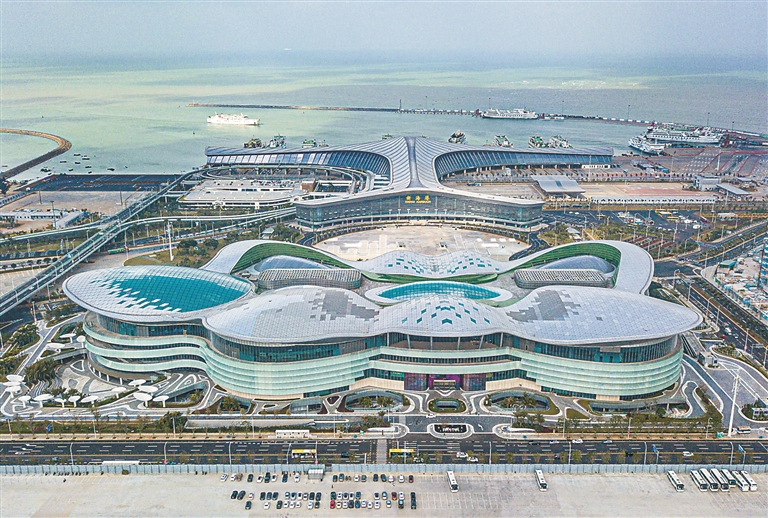 据海口海关统计,海南货物贸易进出口继2022年首次突破2000亿元后,2023年进出口、出口和进口规模分别达到2312.8亿元、742.1亿元和1570.7亿元,均创历史新高。图为1月16日在海南省海口市拍摄的中免集团海口国际免税城。新华社记者 蒲晓旭 摄