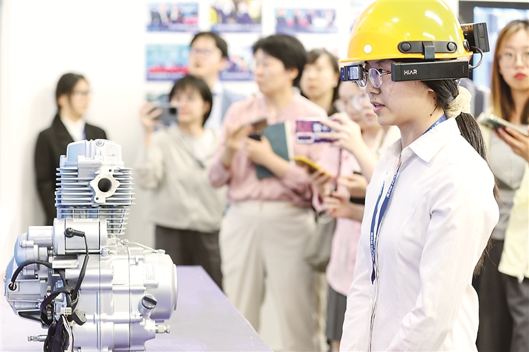 江苏苏州正以创新、智能、绿色、安全为方向,因地制宜发展新质生产力。图为昆山元宇宙产业园内,工作人员在演示AR智能穿戴设备赋能工业应用的场景。新华社发