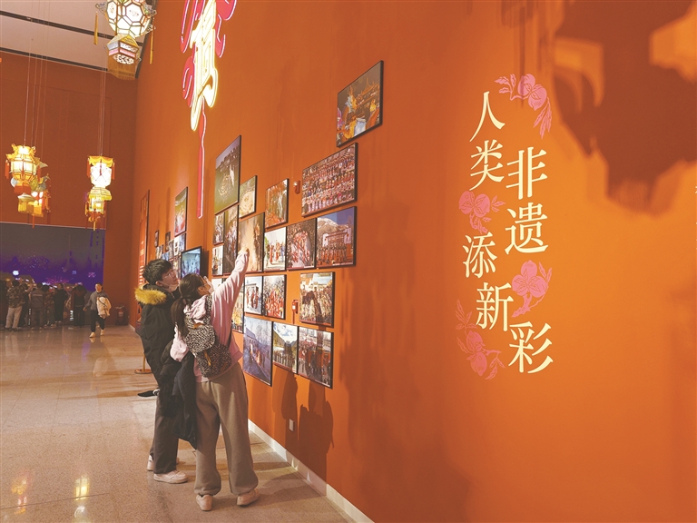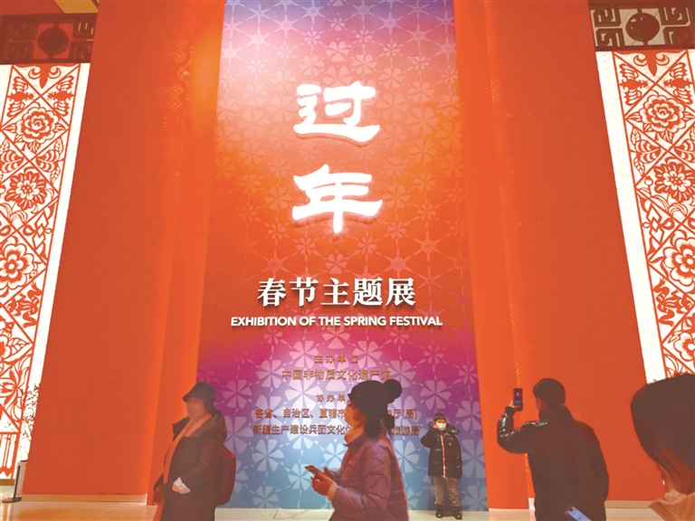 从冬至、腊八、小年,到除夕、春节,再到元宵节,主题展以春节的重要时间节点为主题线索,设置“辞旧迎新”“欢聚祝福”“乐岁弦歌”“普天同庆”等展出单元。从南到北,120余项与春节有关的非物质文化遗产代表性项目,吸引了诸多游客的目光,让八方游客沉浸式体验“中国年”。
