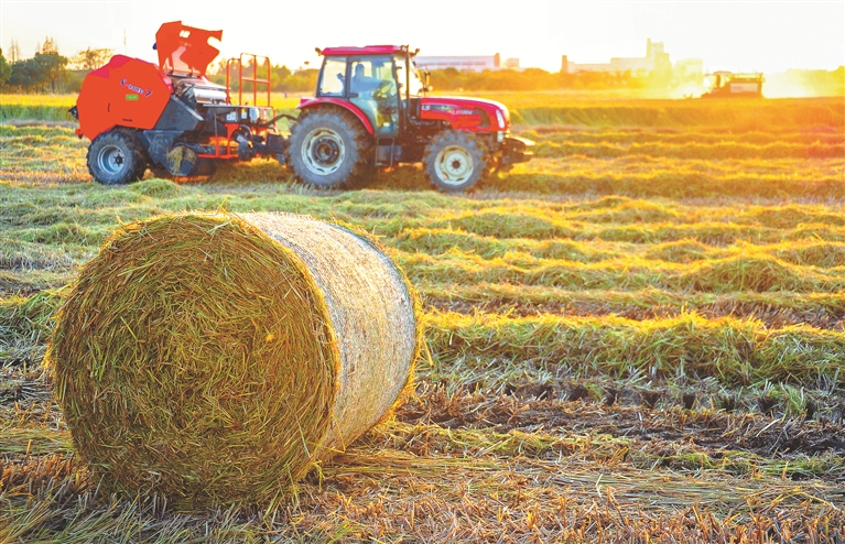 江苏省太仓市城厢镇东林村利用现代化秸秆收集设备进行秸秆收集。马君怡 摄