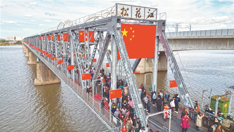 近年来,从文化场馆到商业街区,从红色旅游到乡村旅游,文旅新业态新场景不断涌现。图为游客在黑龙江省哈尔滨市滨州铁路桥上游览。 新华社发