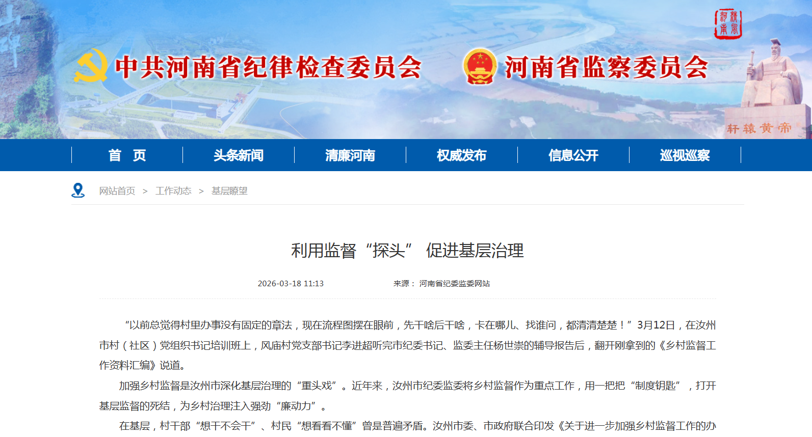 加强乡村监督是汝州市深化基层治理的“重头戏”。近年来,汝州市纪委监委将乡村监督作为重点工作,用一把把“制度钥匙”,打开基层监督的死结,为乡村治理注入强劲“廉动力”。