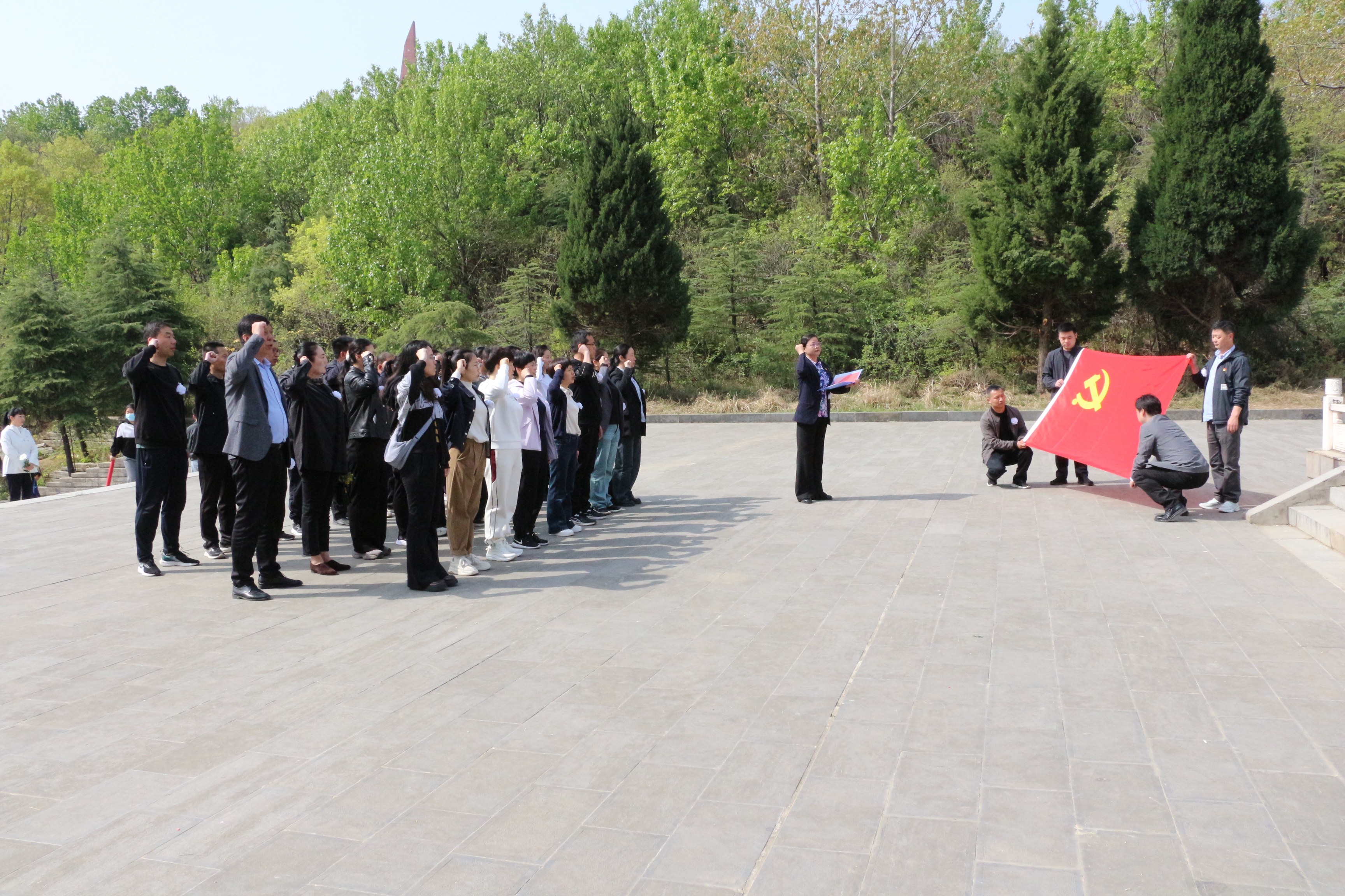 在庄严肃穆的英雄纪念碑前列队肃立,现场气氛凝重,所有人怀着崇敬之情,集体默哀,向为革命事业献出宝贵生命的先烈们致以最沉痛的哀悼。随后,党员们整齐列队,面向鲜红的党旗,郑重地举起右手,重温入党誓词。那一句句铿锵有力的誓言,在烈士陵园上空回荡,彰显出巡察干部坚定不移的理想信念和矢志不渝的初心使命,饱含着对革命先烈的无限敬意与深切缅怀,同时也时刻警醒着每一位党员,牢记自己肩负的责任与义务。仪式结束后,党员干部们怀着崇敬的心情,依次瞻仰烈士纪念碑。他们手持洁白的小花,缓缓走到纪念碑前,轻轻将花献上,寄托对烈士们的追思与敬意。一朵朵小白花,如同一份份真挚的情感,承载着后人对先烈们的感恩与怀念。