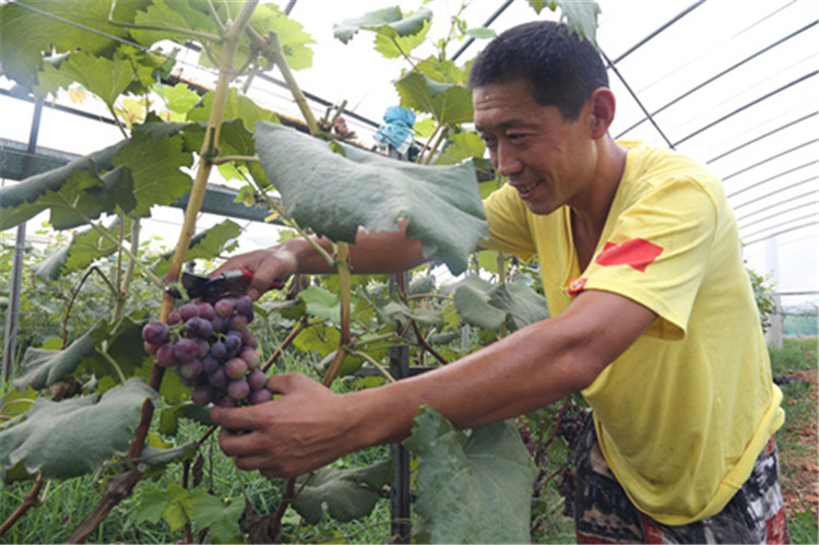 范县佑林葡萄小镇,成熟的葡萄挂满枝头,当地果农正忙着采摘这致富的果子。